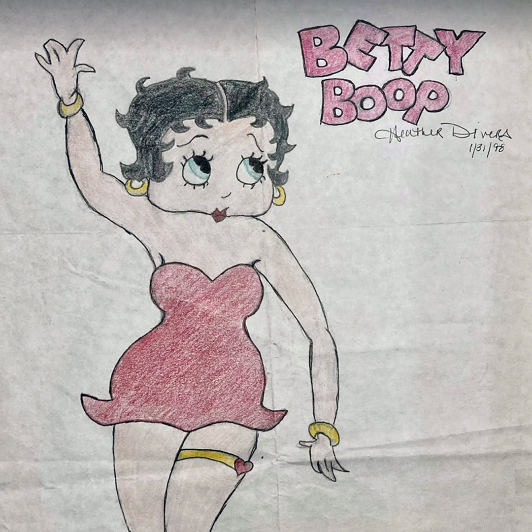 20 some years ago, I was a little girl and my family had just moved into a farmhouse. The last family had left behind a nightstand in my new bedroom. In the drawer of the nightstand was this drawing of Betty Boop. Amazed by this Heather Divers person, I dreamed of the day that I would be able to draw Betty Boop this well! Little-kid-me took it as a sign that I was meant to become a cartoonist.
